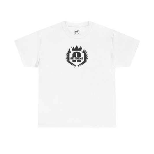 Altadena "A" Crest Tee – Wings & Crown Monogram in Black on White