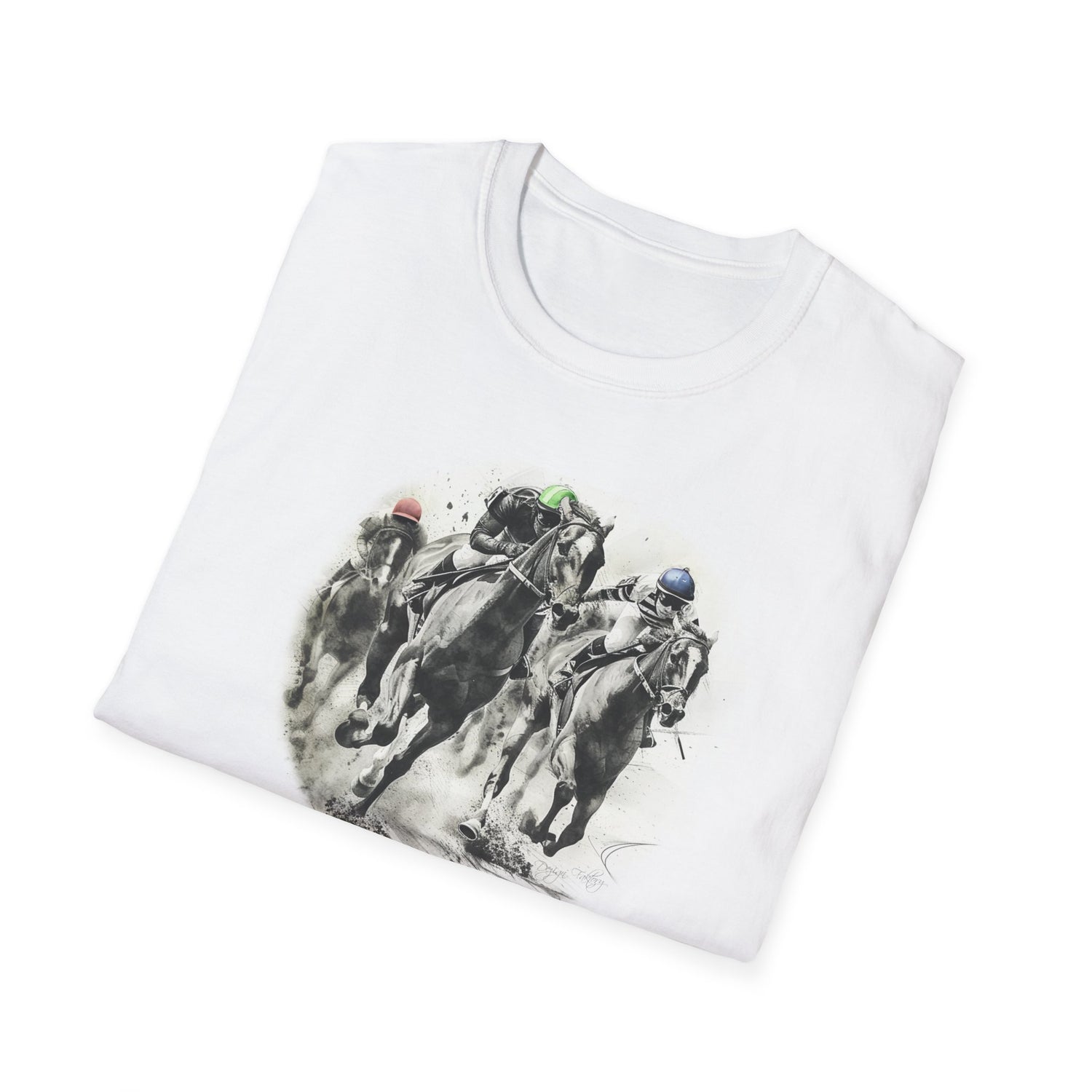 Gallop to Glory: Vintage Horse Race Sketch T-Shirt