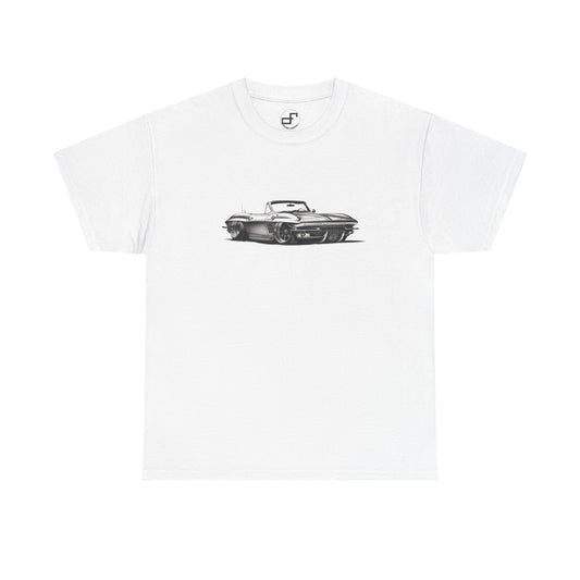 Vintage Corvette Stingray Art Tee: 1950s Convertible Pen Drawing on Premium Cotton